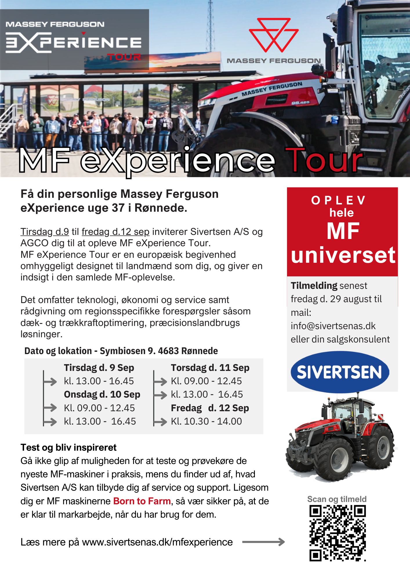 MF eXperience Tour er en europæisk begivenhed omhyggeligt designet til landmænd som dig, der tilbyder skræddersyede aktiviteter, der opfylder dine specifikke forretningsbehov.